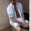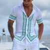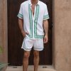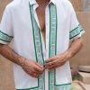 Good news — we’re restocking this style soon! If your size is sold out, select your size and register your email to be notified when it’s available. Our Jacob Shirt features a bold Grecian motif, making it the ultimate beach-to-bar essential, pair with our Jacob Short for the complete look. – Relaxed fit- Short sleeves- Centre front button closure- Unlined without stretch- 55% Rayon % 45% Linen Please refer to care label for garment care instructions. Colours may appear slightly different to the website due to lighting, computer picture resolution and monitor settings. ~section~ – Length (Size L): 78cm/31inches.- If you need more help with sizing, see our size guide or email us at [email protected] ~section~ Shaun wears a size L and is 188cm tall.