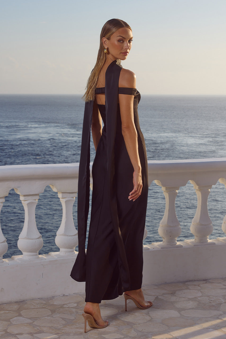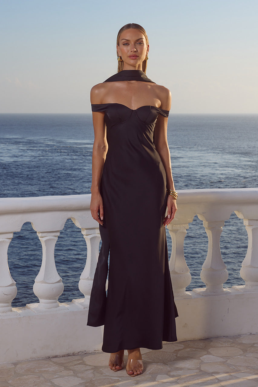 COMING SOON – Hold tight! This style will be yours by early September. With an off the shoulder neckline and scarf, our Raphaella Maxi Dress is feminine and flirty. – Maxi length- Underwire- Centre back invisible zipper- Lined, non-stretch- Body: 97% Polyester u0026 3% Spandex, Lining: 100% Polyester Please refer to care label for garment care instructions. Colours may appear slightly different to the website due to lighting, computer picture resolution and monitor settings. ~section~ – Length (Size S): 130cm/51inches. It is true to size. – If you need more help with sizing, see our size guide or email us at [email protected] ~section~ Stacy wears a size AU 8/ S/ US 4 and is 180cm tall.