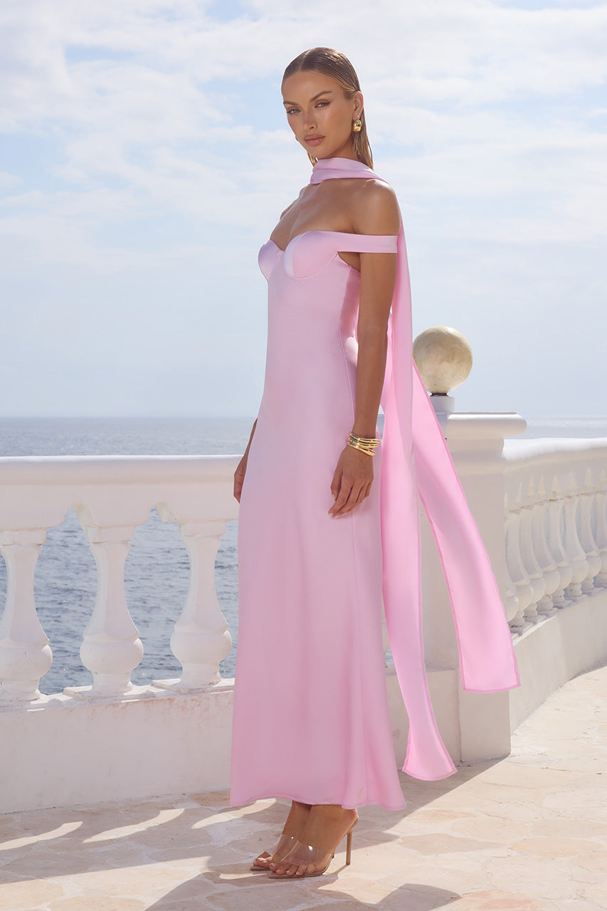COMING SOON – Hold tight! This style will be yours by early September. With an off the shoulder neckline and scarf, our Raphaella Maxi Dress is feminine and flirty. – Maxi length- Underwire- Centre back invisible zipper- Lined, non-stretch- Body: 97% Polyester u0026 3% Spandex, Lining: 100% Polyester Please refer to care label for garment care instructions. Colours may appear slightly different to the website due to lighting, computer picture resolution and monitor settings. ~section~ – Length (Size S): 130cm/51inches. It is true to size. – If you need more help with sizing, see our size guide or email us at [email protected] ~section~ Stacy wears a size AU 8/ S/ US 4 and is 180cm tall.