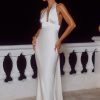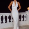 Our Sylvie Maxi Dress features a plunging neckline with pleats to shape the body and dramatic sashes that fall from the neck, making it a feminine, timeless piece. – Maxi length- Halter neck- Centre back invisible zipper- Lined, non-stretch- Body: 97% Polyester u0026 3% Spandex, Lining: 100% Polyester Please refer to care label for garment care instructions. Colours may appear slightly different to the website due to lighting, computer picture resolution and monitor settings. ~section~ – Length (Size S): 150cm/59inches. It is true to size. – If you need more help with sizing, see our size guide or email us at [email protected] ~section~ Annabel wears a size AU 8/ S/ US 4 and is 175cm tall.